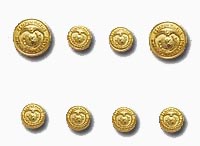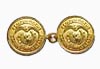 • Buttons and Accessories: The mess jacket requires a special set of eight Marine Corps League buttons which are sewn onto the jacket—three on each side of the the front of the jacket and one on each epaulette. Regular or associate member collar devices, as appropriate, are affixed to the mess jacket in the locating holes on the jacket's collar. In addition, the jacket is fastened in the front with a linked pair of Marine Corps League buttons known as a "chain link." If the scarlet blazer is worn in lieu of the mess jacket, there will be two (2) large Marine Corps League buttons on the front of the blazer, and three (3) small Marine Corps League buttons on each sleeve. Collar devices are not worn on the scarlet blazer, even when it is worn as part of the formal uniform.