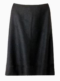 • Skirt or Slacks: A black skirt or black slacks shall be worn with the formal uniform. If a skirt is worn, it shall be a black, straight, ankle-length type with a slit on the left hand side. The slit should be no higher than mid-knee or the bottom of the kneecap. When black slacks are worn, a 1½-inch or 1¼-inch wide black leather belt shall also be worn. The wide leather belt is worn with the large square buckle, while the narrower belt is worn with the rectangular buckle. Both buckles are gold in color and have the Marine Corps emblem on them. As another option, regular of associate member blue trousers, as appropriate, may be worn, but only with the scarlet mess jacket. If blue trousers are worn with the scarlet mess jacket, a Marine Corps khaki web belt and brass buckle should be worn.