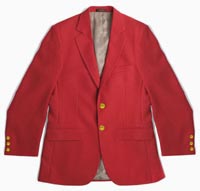 • Scarlet Mess Jacket or Scarlet Blazer: The scarlet mess jacket is worn with this uniform, but the red blazer may be worn as an option due to the high cost of the scarlet mess jacket. The jacket or the blazer should fit properly and should not "pull" when buttoned. Both the mess jacket and blazer are available either through the Ship's store or through private clothiers.