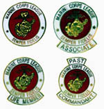 • Lapel Pin: The Marine Corps League Member, Life Member, Commandant, and Associate Member pins may be worn in the left lapel button hole. Other pins are authorized, but never more than two (2) at a time. Consult section VIII of the current edition of the Marine Corps League Uniform Code for a detailed listing of authorized lapel pins.